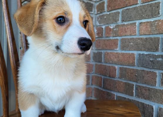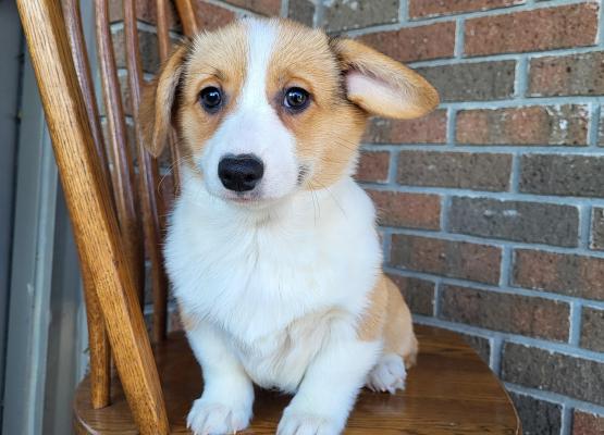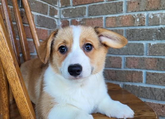 Meet Reggie. He is such a lovable and playful Corgi pup. Reggie is AKC registered, up to date on all his vaccinations, on a de worming schedule and will be vet checked before leaving with his new family. We send a 1 year genetic health guarantee with our puppies as well as a bag of food to get you started. Reggie is laid back, calm and knows how to capture your heart! Call or text us today to learn more about him and how you can add him into your family!