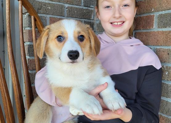 Say hello to this tiny, sweet little girl named Chloe. Chloe is an adorable, AKC registered, Corgi pup who is ready to share her love with her new family. She is up to date on all her vaccinations, on a de worming schedule, vet checked and cleared for her new home. Chloe is very small for her age and we suspect she will always stay on the smaller side. She has a small umbilical hernia that vets recommend should be fixed once she is older, or at the time she is spayed. Her umbilical hernia won't effect her health or her life span in any way and can easily be taken care of. Because of her hernia, we have slightly discounted her price. Chloe loves to play with our kids but also has a very laid back personality. Call or text us today to learn more about this sweet little cutie and how you can add her into your family!
